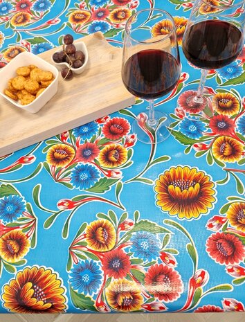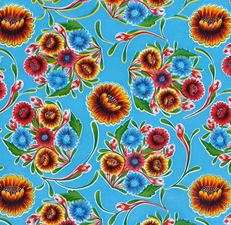 Proefstaaltje: Mexicaans tafelzeil floral lichtblauw € 2,25