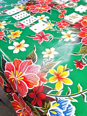Het vrolijkste bloementafelzeil van de wereld is dit groene fortin tafelzeil van Kitsch Kitchen! Dit zeil is zo sterk dat het zelfs gebruikt wordt om er tassen en andere leuke accessoires mee te maken. Het pvc tafelkleed is met een vochtig doekje makkelijk af te nemen. Het is sfeervol, decoratief en functioneel op tafel en al verkrijgbaar vanaf 50 centimeter. Bestel je een hele rol? Dan profiteer van je een hoge korting! - Breedte: 120 centimeter - Lengte: Vanaf 50 centimeter tot 11 meter (een rol tafelzeil) - Prijs: Weergegeven prijs is per halve meter - Extra korting bij afname volledige rol - Materiaal: Bedrukt PVC, harde rug en dun laagje draadjes textiel - Machinewasbaar: Nee
