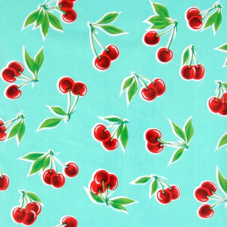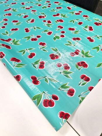 Met dit sfeerverhogende tafelzeil zorg je voor een vrolijke blik in jouw keuken, woonkamer of achtertuin! Het mexicaanse tafelzeil met kersenprint ziet er speels uit en kan voor jou op maat gesneden worden! Uiteraard kun je ook een hele rol met kersen mint bestellen! Op een hele rol zit 11 meter.