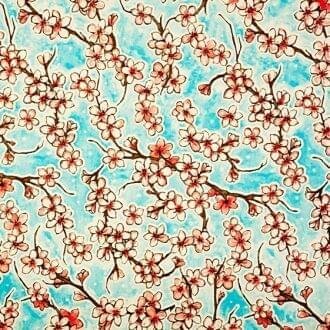 Proefstaaltje: Mexicaans tafelzeil kersenbloesem lichtblauw € 2,25
