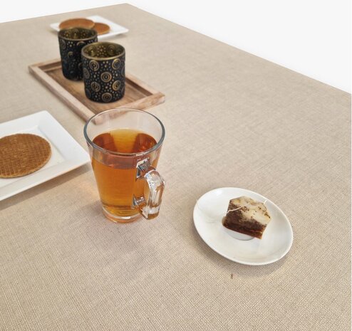 Onze collectie met tafellinnen is van een speciale acryl coating voorzien. Dit zorgt ervoor dat het gemakkelijk afneembaar is. Wel raden we aan om tijdens de maaltijden een vochtige doek bij de hand te houden. Vlekken van hardnekkige kleurstoffen zoals rode wijn kunnen snel in het zeil trekken. Wanneer je er direct bij bent met een vochtige doek blijft de schade vaak beperkt.