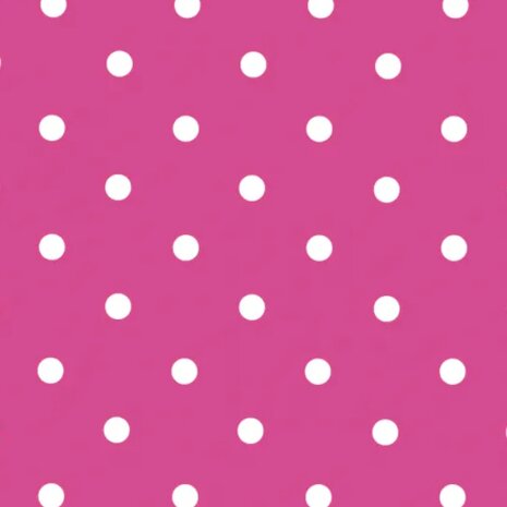 Zelfklevende folie met polkadot stippen in fuchsia roze. De afmeting is 45x200cm.