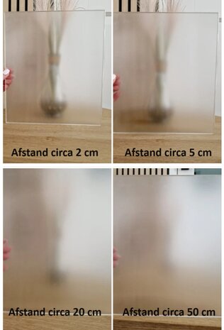 Dit raamfolie wordt veel gebruik bij woningen. Je creëert er meer privacy mee. Hoe verder je van het folie af staat, hoe minder je zichtbaar bent. Je kunt dit effect zelf beoordelen door een proefstaaltje te bestellen! Het raamfolie wordt ook veel gebruikt in wachtkamers, op scholen en op kantoren. Wil je het raamfolie aanbrengen op HR++ glas? Informeer dan eerst even bij je glasleverancier wat betreft de mogelijkheden van raamfolie op het raam. Het raamfolie kan niet op alle soorten ramen aangebracht worden i.v.m. de kans op thermische breuken. Je glasleverancier kan je hierover het beste informeren. Wij snijden het raamfolie speciaal voor je op maat in de lengte. Per 50 cm kun je een keuze maken in het keuzemenu. Wij snijden het vervolgens van de grote rol af in ons magazijn. Omdat we het raamfolie ruim op voorraad hebben kunnen we je bestelling vrijwel altijd direct leveren. Het is niet mogelijk om op maat gesneden raamfolie te retourneren of te ruilen. Maak daarom gebruik van onze proefstalen service. Bestel vooraf een proefstaaltje en voorkom een eventuele teleurstelling achteraf! Een proefstaal is circa 8x8 cm groot. Tips voor het plakken van het standaard raamfolie: - Maak het raam goed schoon en vetvrij - Knip of snij het glasfolie in een iets groter formaat dan de grootte van het te beplakken raam - Vervolgens dien je het raam goed nat te maken met water (eventueel met sop) - Trek ongeveer 10 centimeter papier van het folie - Plak het raamfolie aan de bovenzijde van het raam - Trek nu het papier aan de achterzijde voorzichtig naar beneden - Het overtollige folie kun je met behulp van een liniaal en een scherp mes afsnijden - Strijk het water weg met een raamwisser, dit doe je vanuit het midden naar de zijkant In de video hieronder zie je hoe het raamfolie standaard wordt aangebracht: