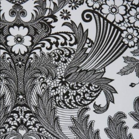 35x120cm Restje Mexicaans tafelzeil paraiso zwart op wit