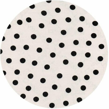 Proefstaaltje: Mexicaans tafelzeil wit met zwarte stippen € 2,25