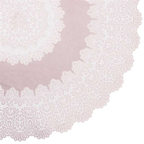 Dit tafelkleed is ideaal voor buiten! Voor op de tuintafel of op de picknicktafel. Het kleed is gemaakt van zacht schuimvinyl. Het is makkelijk afneembaar en daardoor goed schoon te houden. Deze tafelkleden hebben een voelbaar kanten patroon. Het is antislip, kleurecht en weerbestendig. Kortom een perfect buitentafelzeil! - Doorsnee: 180 centimeter - Materiaal: vinyl, zacht schuimvinyl - Opengewerkt zodat het regenwater gemakkelijk kan weglopen