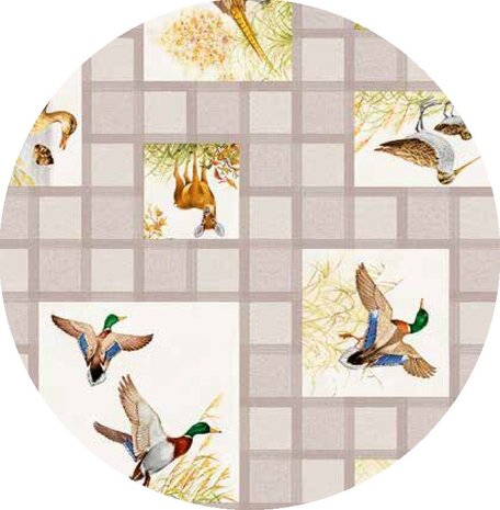 Het tafelzeil wilde eend en fazant geeft een mooie uitstraling aan je gedekte tafel..Dit tafelzeil wordt speciaal voor jou op bestelling rond gesneden! Dit pvc tafelzeil heeft een vaste doorsnee van 138-140cm. Omdat de breedte van dit tafelzeil 138-140cm is, is het niet mogelijk om dit tafelzeil groter te bestellen.
