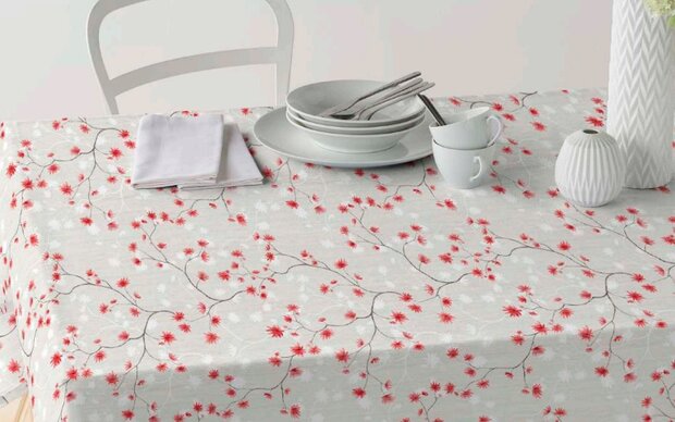 tafellinnen is van een speciale acryl coating voorzien. Dit zorgt ervoor dat het gemakkelijk afneembaar is. Wel raden we aan om tijdens de maaltijden een vochtige doek bij de hand te houden. Vlekken van hardnekkige kleurstoffen zoals rode wijn kunnen snel in het zeil trekken. Wanneer je er direct bij bent met een vochtige doek blijft de schade vaak beperkt.