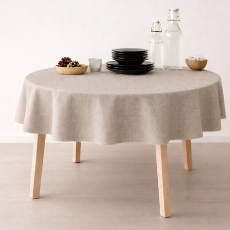 Een mooi taupe kleurig tafelzeil van hoge kwaliteit met een zichtbare structuur. Het materiaal voelt aan als een tafelkleed, maar beschikt door de speciale coating over de positieve eigenschappen van tafelzeil. Zo zullen vlekken minder snel in het materiaal trekken en kun je deze met een vochtig doekje af nemen.