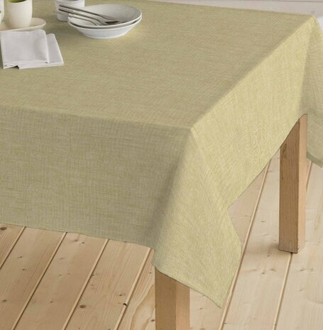 Een mooi tafelzeil van hoge kwaliteit met een zichtbare structuur. Het materiaal voelt aan als een tafelkleed, maar beschikt door de speciale coating over de positieve eigenschappen van tafelzeil. Zo zullen vlekken minder snel in het materiaal trekken en kun je deze met een vochtig doekje af nemen.