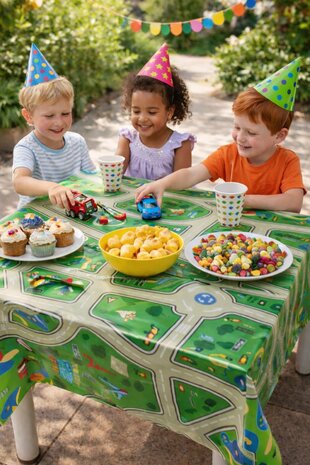 Onze tafelzeilen zijn gemaakt van flexibel PVC dat voldoet aan de Europese eisen. Je maakt het materiaal eenvoudig schoon met een vochtige doek. Vlekken van rode wijn of tomatensaus verwijder je het best meteen, omdat hardnekkige kleurstoffen soms snel in het zeil kunnen trekken. Het tafelzeil kan zowel binnen als buiten worden gebruikt, al kan zonlicht op termijn voor lichte verkleuring zorgen.