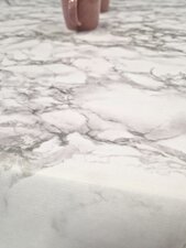 Heel gaaf dit tafelzeil met marmer look!