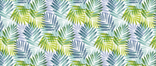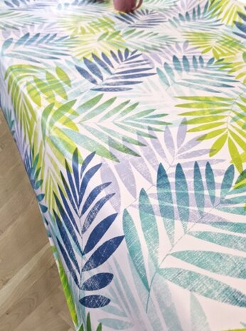 Proefstaaltje: Tafelzeil palmbladeren groen/blauw € 2,25
