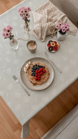Ik houd van mooie neutrale kleuren en dit tafelzeil heeft dat. Er zit wel een kleine print in wat het heel erg mooi maakt.