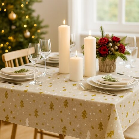 Proefstaaltje: Wasbaar gecoat kerst tafelzeil Christmas Darrel € 2.49