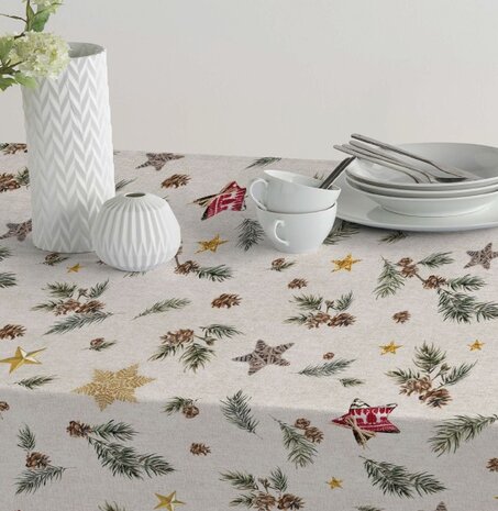 Proefstaaltje: Wasbaar gecoat kerst tafelzeil sfeervolle kerst € 2.49