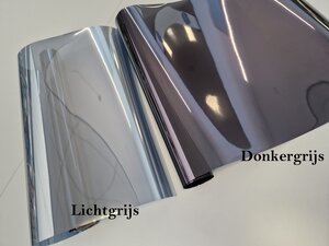 Dit raamfolie is ideaal tegen zonlicht en uv-stralen. Het is een voordelige manier van zonwering en het is erg effectief. Het raamfolie is 50 cm breed, de lengte snijden we voor je op maat per 50 cm. Kies de gewenste maat in de maattabel en we snijden het voor je van de grote rol in ons magazijn. Omdat we het op maat snijden is het uitgesloten van retourname. Wil je het folie graag van te voren zien en beoordelen? Bestel een proefstaaltje! Je ontvangt dan een klein stukje van circa 8x8 centimeter waarmee je een goede indruk krijgt van het folie. Het raamfolie is donkergrijs aan de binnenzijde en van buiten is het spiegelend, zilverkleurig. Het spiegelende effect zorgt voor weerkaatsing van het zonlicht. Het folie houdt maar liefst 87% van het zonlicht tegen en de UV bescherming is 90%. Het statische zonwerende folie is eenvoudig aan te brengen. Je hoeft hiervoor geen professional te zijn. Kleine oppervlakten kun je vaak zelfs alleen beplakken. Bij wat grotere oppervlakten raden we aan om met z'n tweeën te werk te gaan. Wil je graag je ramen beplakken met dit raamfolie maar heb je HR++glas? We adviseren je in dat geval om contact op te nemen met je glasleverancier en te vragen naar de mogelijkheden. Het zonwerende raamfolie is niet voor elke glassoort geschikt. Om te voorkomen dat er breuken in je ramen ontstaan raden we je dus aan om advies te vragen bij je glasleverancier, zij kunnen je hierin goed adviseren en weten welke raamfolie geschikt is voor jouw ramen!