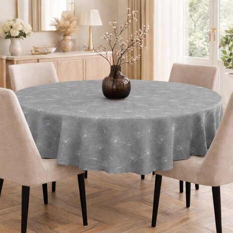 Een sfeervol en natuurlijk ogend tafelzeil, zo zou je het ronde tafelzeil pluizenbloem grijs kunnen omschrijven. Het is een print die perfect past bij de interieurtrends van tegenwoordig. Dit tafelzeil is een echte eyecatcher voor je eettafel. Het is niet alleen decoratief maar natuurlijk ook zeer goed ter bescherming van je tafelblad.
