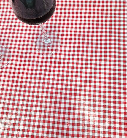 Heel mooi tafelzeil met rode ruitjes. komt goed overeen met de foto