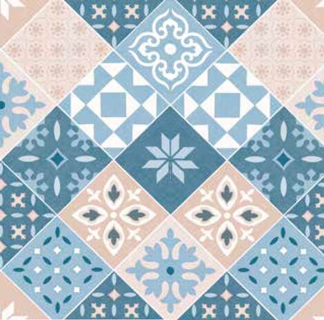 Proefstaaltje: Tafelzeil tegeltjes blauw terra € 2,25