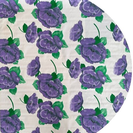 Proefstaaltje: Mexicaans tafelzeil paarse rosas op wit € 2,25