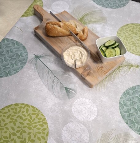 Proefstaaltje: Tafelzeil veertjes groen € 2,25
