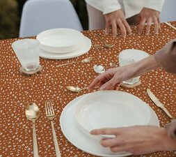 Let op dat vlekken van hardnekkige kleurstoffen zoals mosterd, rode wijn en kerrie snel in het zeil kunnen trekken. Houd een vochtig doekje bij de hand om eventueel gemaakte vlekken nog tijdens de maaltijd af te nemen. Op die manier kun je het langst van je tafelzeil genieten! Dit mooie tafelzeil is machinewasbaar op 30 graden. Houd wel rekening met een eventuele krimp van 4% op het tafelzeil. (Bij een tafelzeil van 250x140cm kan er circa 10% krimp ontstaan.)