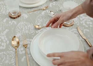 Onze collectie met tafellinnen is van een speciale coating voorzien. Dit zorgt ervoor dat het gemakkelijk afneembaar is. Wel raden we aan om tijdens de maaltijden een vochtige doek bij de hand te houden. Vlekken van hardnekkige kleurstoffen zoals rode wijn kunnen snel in het kleed trekken. Wanneer je er direct bij bent met een vochtige doek blijft de schade vaak beperkt.