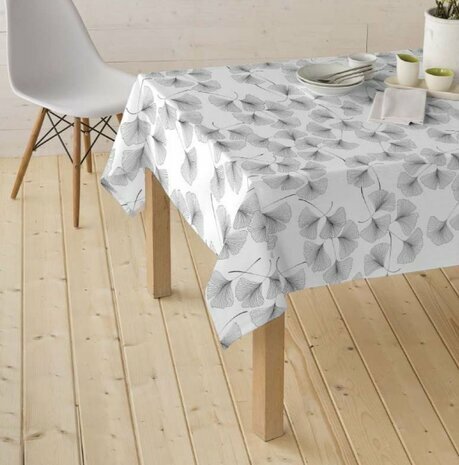 Proefstaaltje: Wasbaar gecoat tafelzeil Ginko wit € 2.49