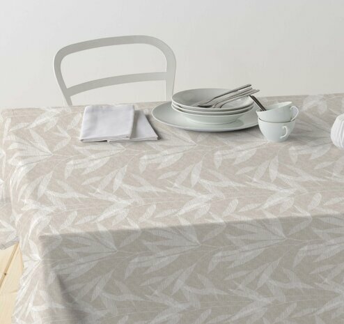 Dit wasbare gecoate tafelzeil geeft een sfeervolle en natuurlijke uitstraling. Dit tafelzeil is behandeld met een speciale coating waardoor het zeil met een vochtig doekje eenvoudig af te nemen is. Het geweven