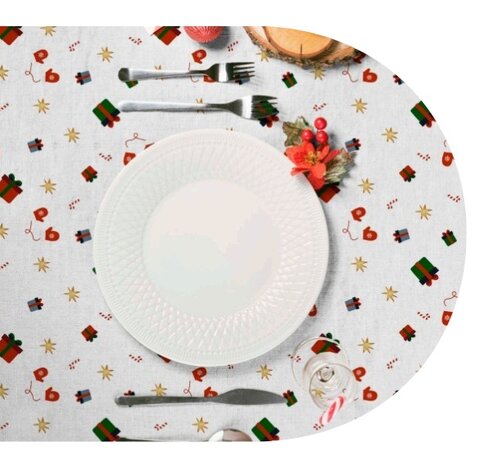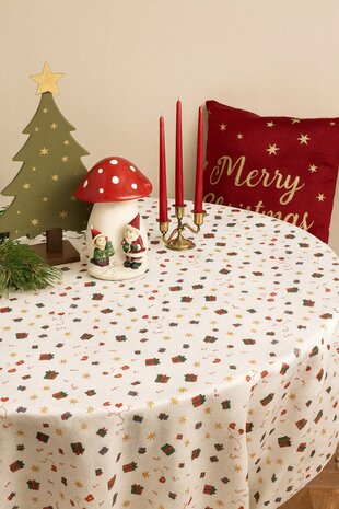Proefstaaltje: Wasbaar gecoat kerst tafelzeil kerstcadeautjes € 2.49