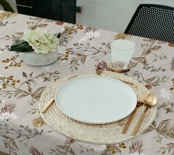 De natuurlijke eigenschap van linnen is dat het kreukt. Bovendien heeft linnen van nature oneffenheden in de stof en dus ook in de coating, houd daar rekening mee. Let ook op dat vlekken van hardnekkige kleurstoffen zoals mosterd, rode wijn en kerrie snel in het zeil kunnen trekken. Houd een vochtig doekje bij de hand om eventueel gemaakte vlekken nog tijdens de maaltijd af te nemen. Dit mooie tafelzeil is machinewasbaar op 30 graden. Houd wel rekening met een eventuele krimp van 2%. We raden aan om het tafellinnen niet te vaak in de wasmachine te wassen, om de kwaliteit zo mooi mogelijk te houden. Het gecoate tafelzeil kan ook heel gemakkelijk met slechts een vochtig doekje worden afgenomen.