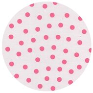 Proefstaaltje: Mexicaans tafelzeil polkadot wit met roze stippen € 2,25