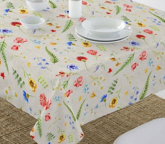 tafellinnen is van een speciale acryl coating voorzien. Dit zorgt ervoor dat het gemakkelijk afneembaar is. Wel raden we aan om tijdens de maaltijden een vochtige doek bij de hand te houden. Vlekken van hardnekkige kleurstoffen zoals rode wijn kunnen snel in het zeil trekken. Wanneer je er direct bij bent met een vochtige doek blijft de schade vaak beperkt.