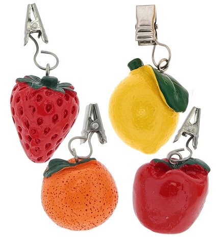 - Set bestaat uit 4 tafelkleedhangers mix fruit
