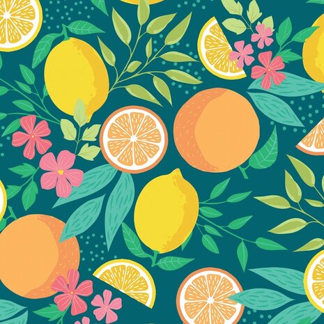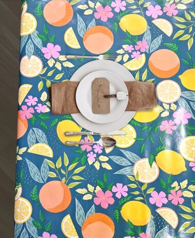 Een tafelzeil met een sfeervolle print van citrusfruit in een vintage stijl. Dit sfeervolle tafelzeil snijden wij per 50 cm voor je op maat. - Breedte: 140 centimeter - Lengte: Vanaf 50 centimeter tot 20 meter (een rol tafelzeil) - Weergegeven prijs is per halve meter - Materiaal: Geprint pvc met zachte non woven vliesrug - Machinewasbaar: Nee