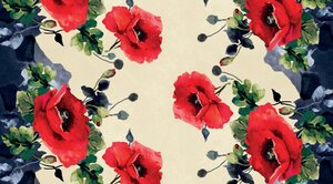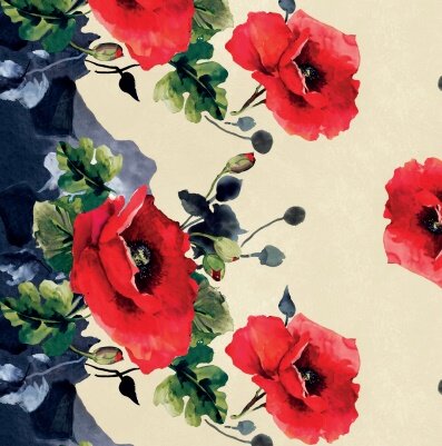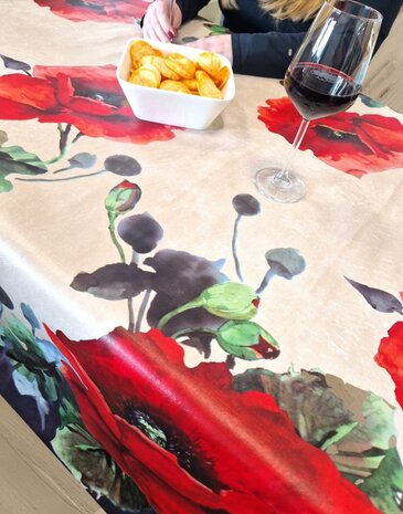 Proefstaaltje: Tafelzeil grote klaprozen beige € 2,25