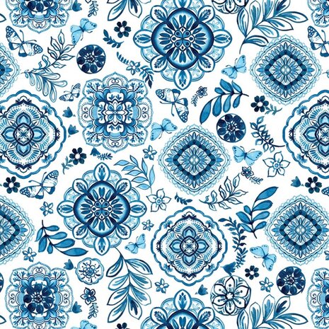 Proefstaaltje: Tafelzeil portugese zomer blauw € 2,25