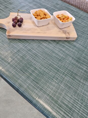Modern tafelzeil in de kleurstelling en interieur trends van dit moment. Prachtig tweed tafelzeil in een groene tint. Makkelijk schoon te houden en ideaal voor gezinnen met kinderen. De breedte is standaard 140cm. De lengte snijden wij voor je van de rol en kan op elke gewenste lengte (per staffel van 50cm) gekozen worden. - Breedte: 140 centimeter - Lengte: Vanaf 50 centimeter tot 20 meter - Weergegeven prijs is per halve meter - Materiaal: plastic - Machinewasbaar: Nee